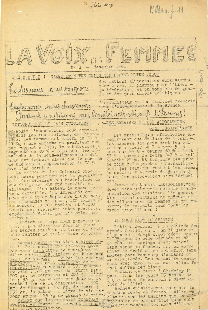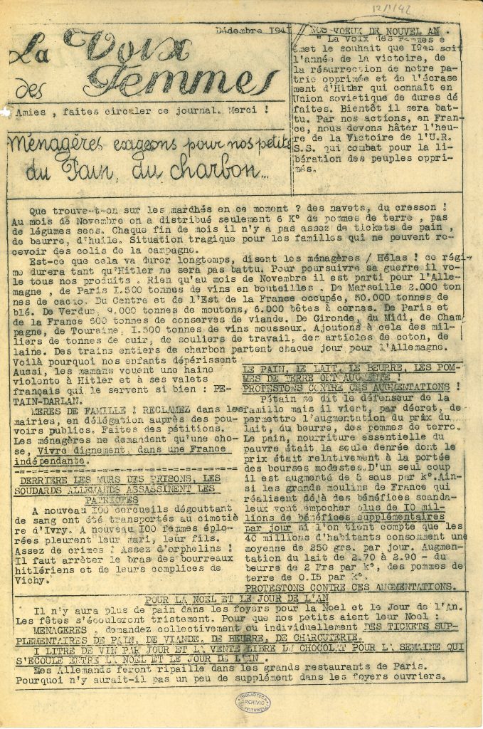 «La voix des femmes», n.2, novembre 1941 e n.2, dicembre 1941