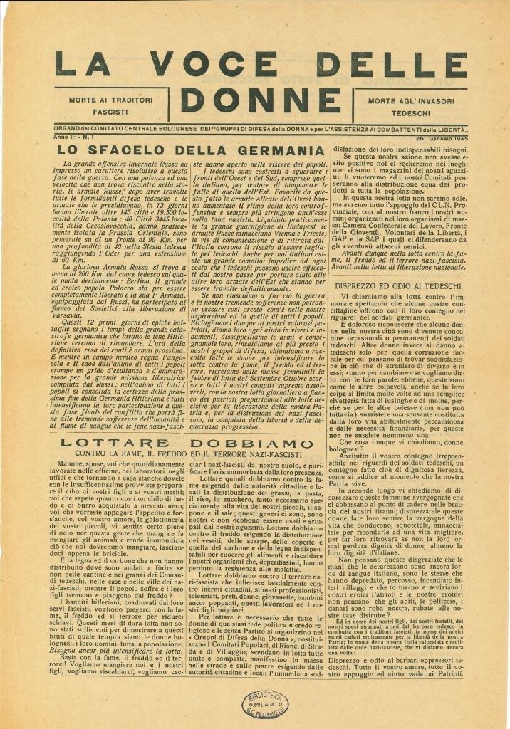 «La voce delle donne», a.II, n.1, 26 gennaio 1945